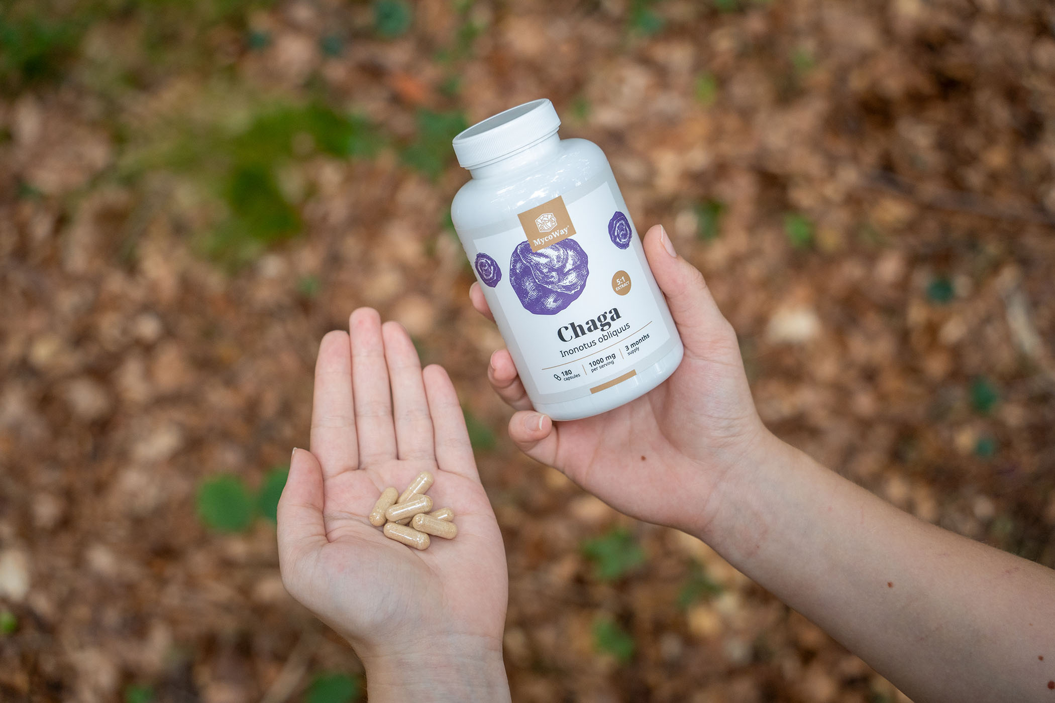 „Mit MycoWay-Kapseln, die Chaga-Pilz enthalten, sorge ich in der kälteren Jahreszeit für mein Wohlbefinden.“