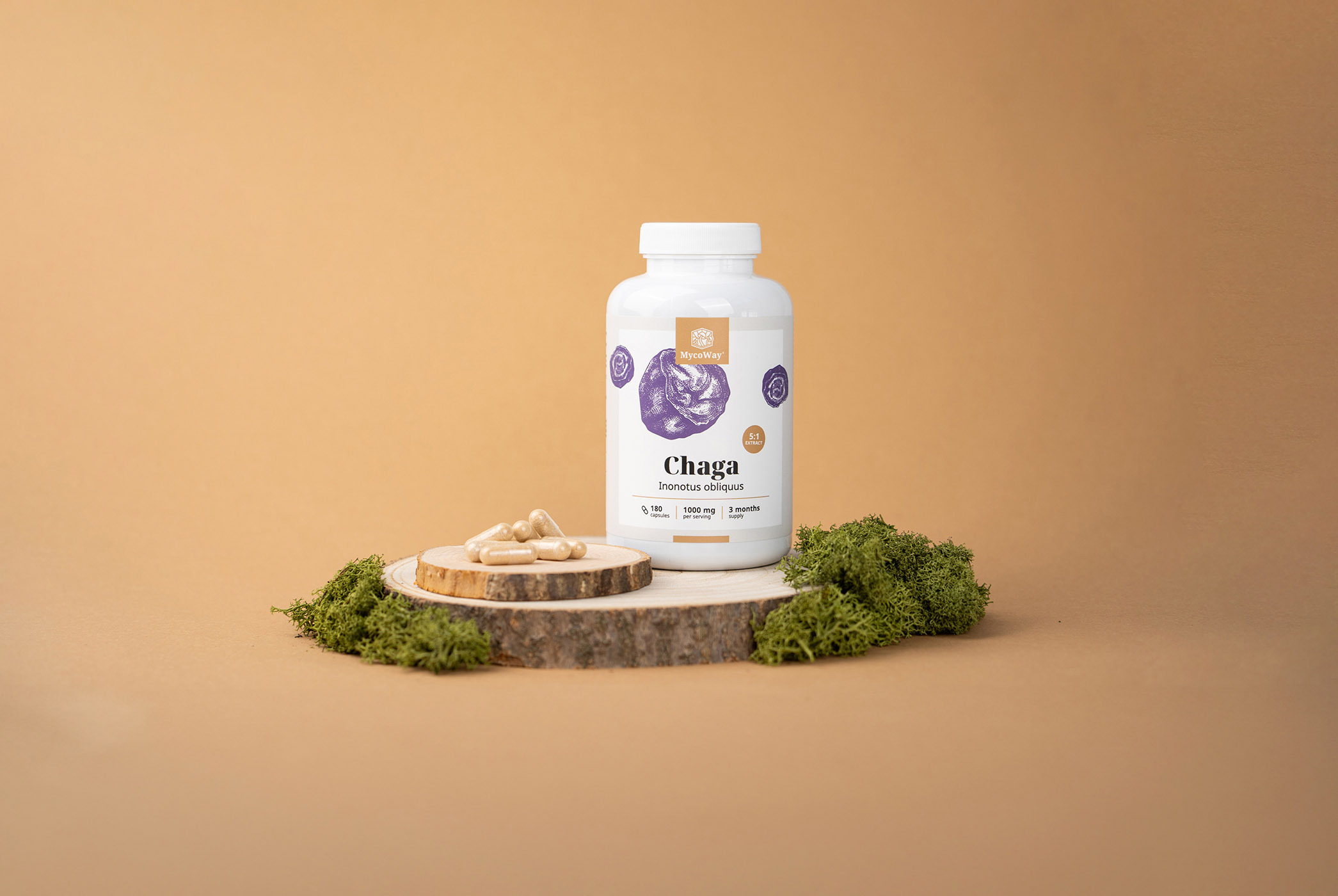 Die Kapseln enthalten einen Extrakt im Verhältnis 5:1, was bedeutet, dass jedes Gramm Extrakt fünf Gramm getrocknetem Chaga entspricht, was eine effektive und starke Unterstützung für Ihren Körper bietet.