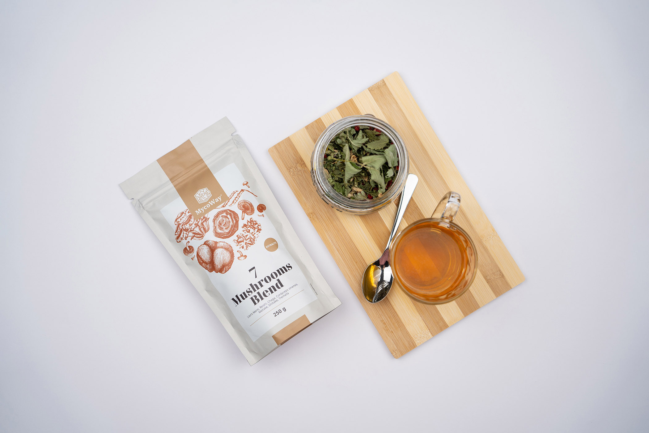 Die Mischung von Extrakten aus sieben Pilzen in Pulverform sorgt für Sie und Ihren Körper von Kopf bis Fuß, von innen nach außen, physisch und mental – egal, welche Phrase wir verwenden, sie bietet umfassende Unterstützung für Vitalität und Wohlbefinden.