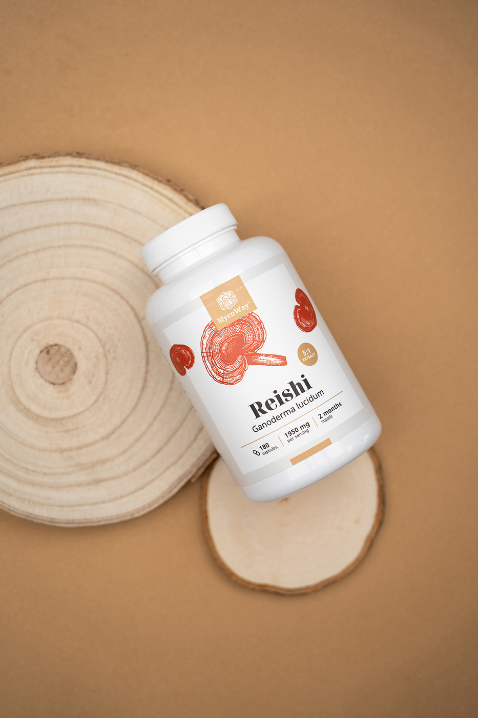 Die Kapseln enthalten Reishi in Form eines 5:1-Extrakts, was bedeutet, dass wir mit dem Extrakt einen 5-fach höheren Wert an Reishi in Pulverform erhalten.
